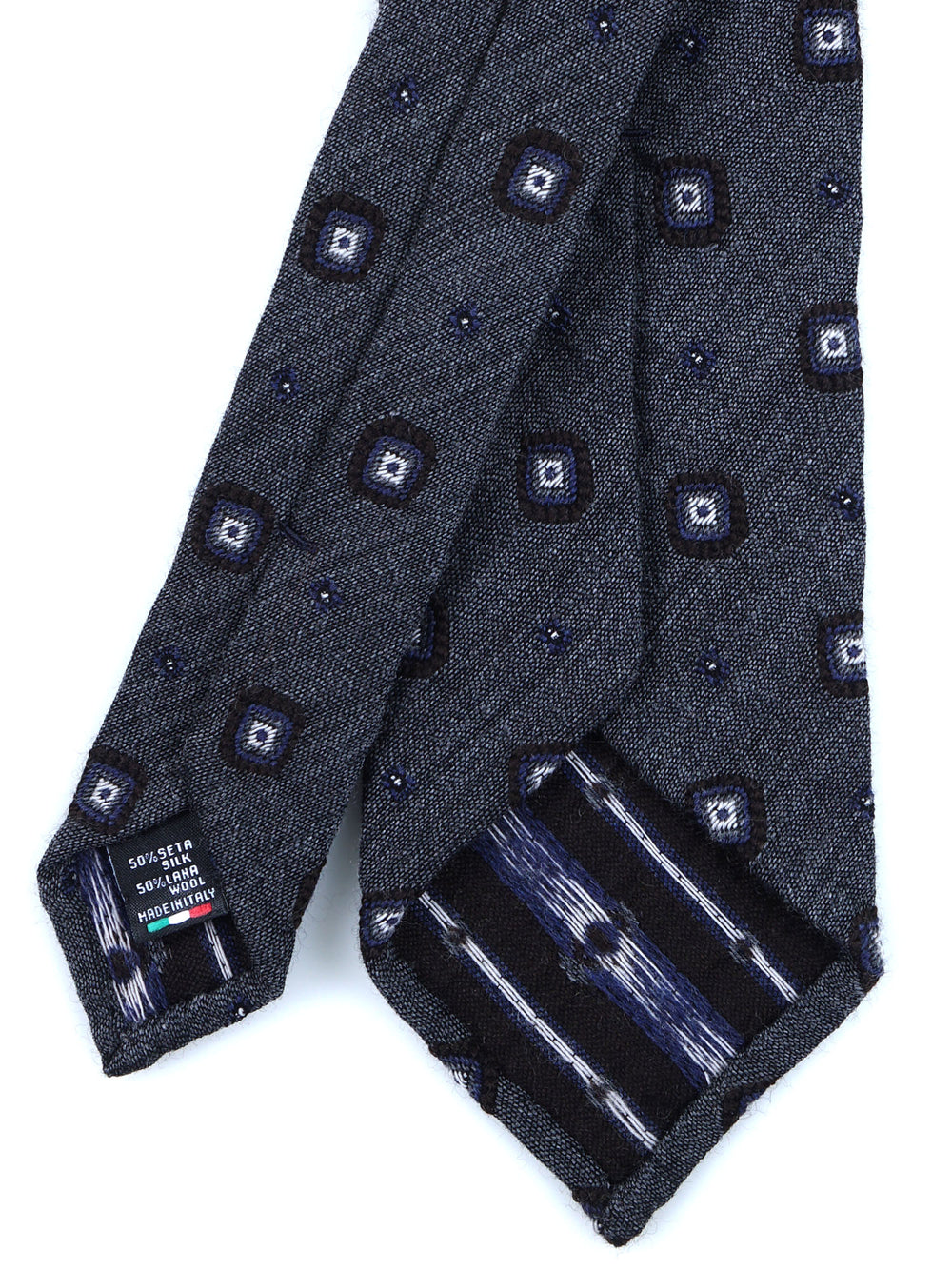 Cravatta grigio 3 pieghe sfoderata senza interno in lana/seta FATHER