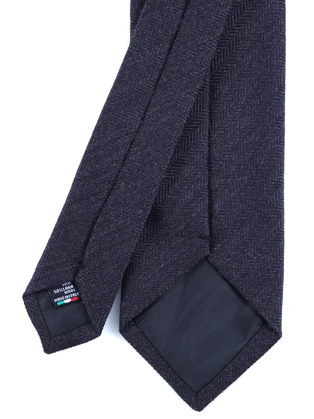 Se esistesse una sola cravatta per la stagione fredda, sarebbe questa. Un caposaldo di versatilità e raffinatezza, che unisce la neutralità del grigio antracite alla nobile texture della spina di pesce. Realizzata in un blend di seta e lana, ha una mano corposa e un finish opaco che la rendono l'accessorio perfetto per l'uomo che cerca un'eleganza concreta e materica, mai banale.