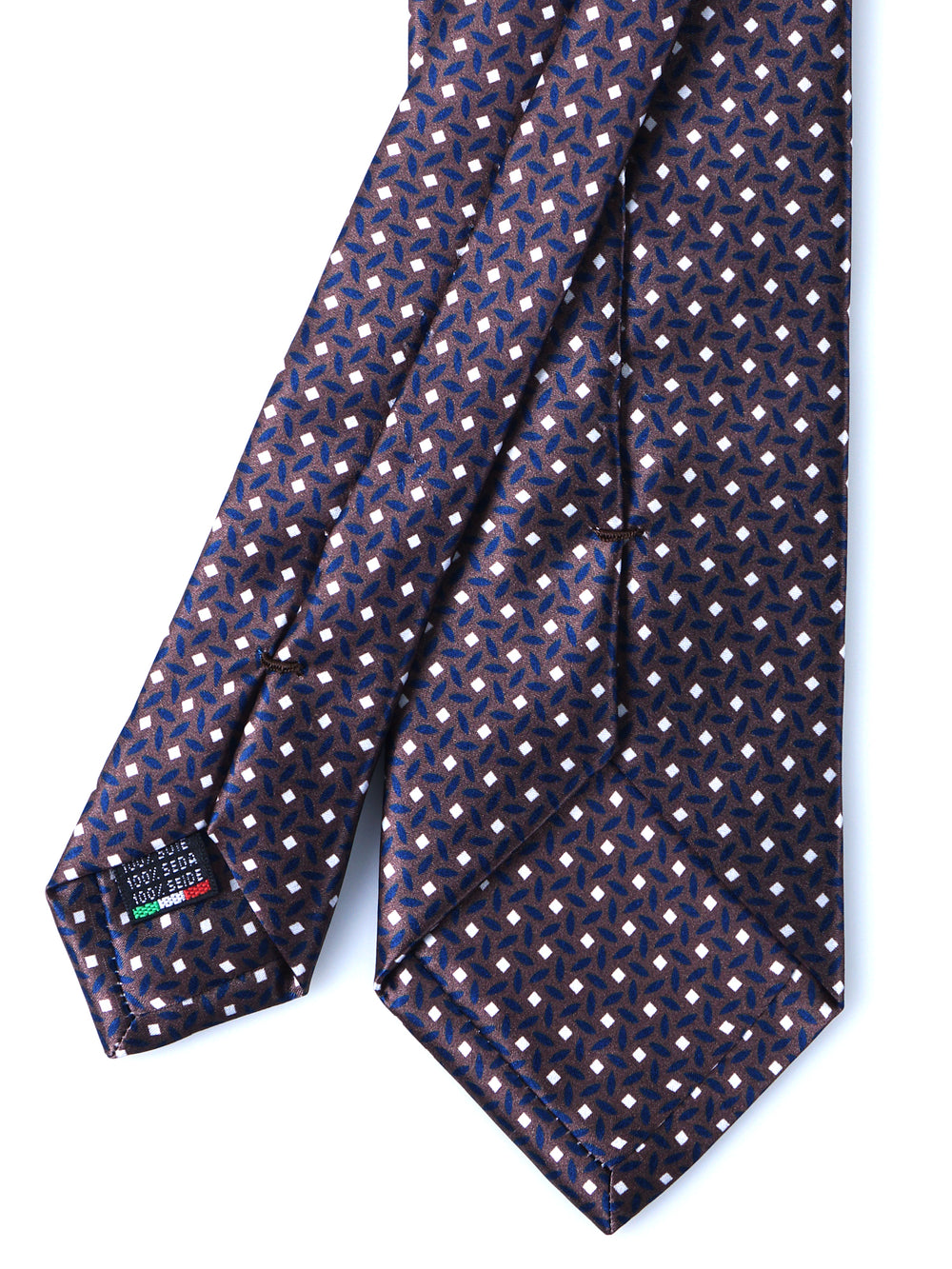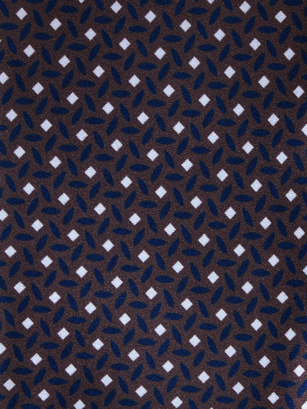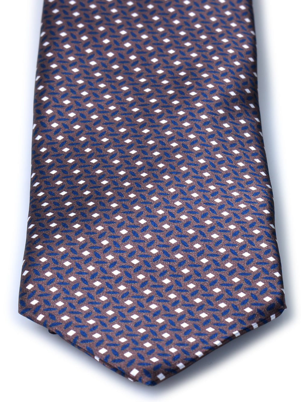 Questa cravatta è un inno alla purezza della seta, un pezzo chiave della collezione Autunno/Inverno per l'uomo che apprezza il lusso materico. Realizzata in un prezioso Raso di Seta, la sua superficie liscia e luminosa cattura la luce in modo unico, donando una profondità cromatica eccezionale. Il disegno geometrico, un "falso unito" nei toni classici del marrone, blu e bianco, la rende un passe-partout di lusso, incredibilmente versatile e sempre appropriato.