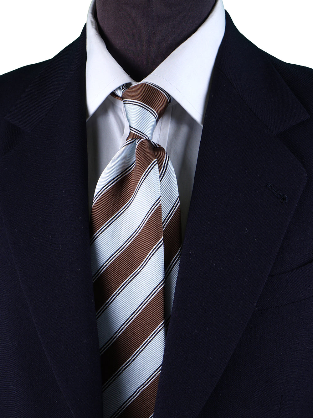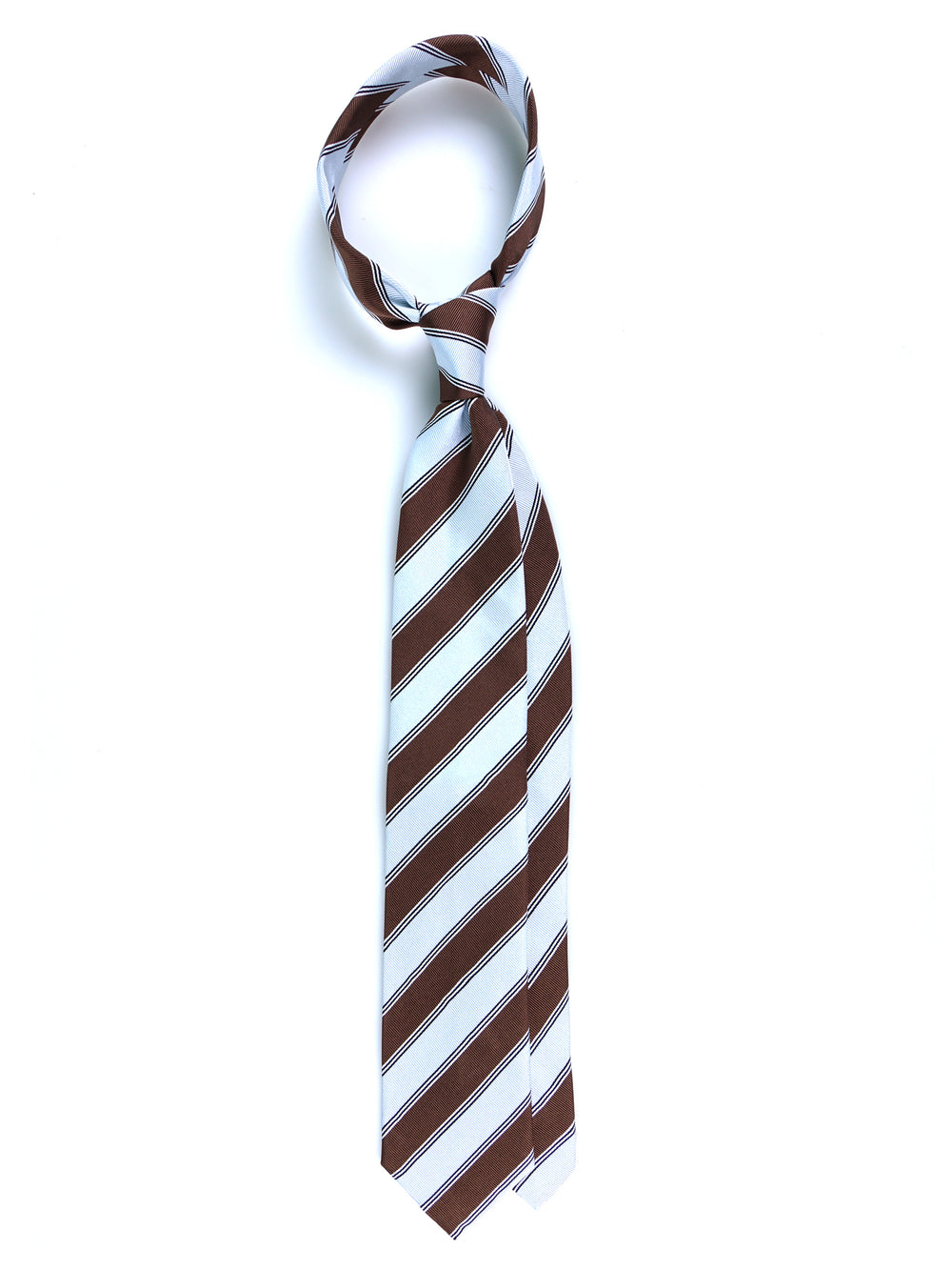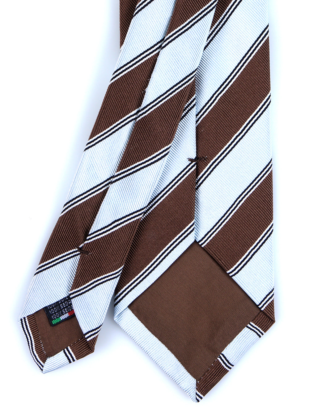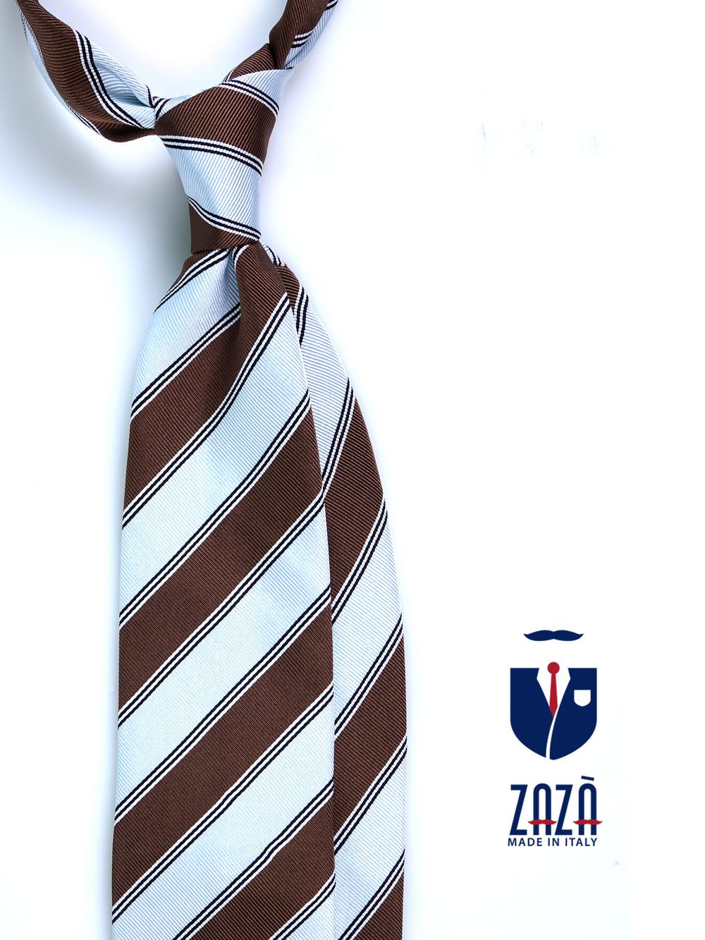 Cravatta marrone/celeste 3 Pieghe NATIVA in seta jacquard