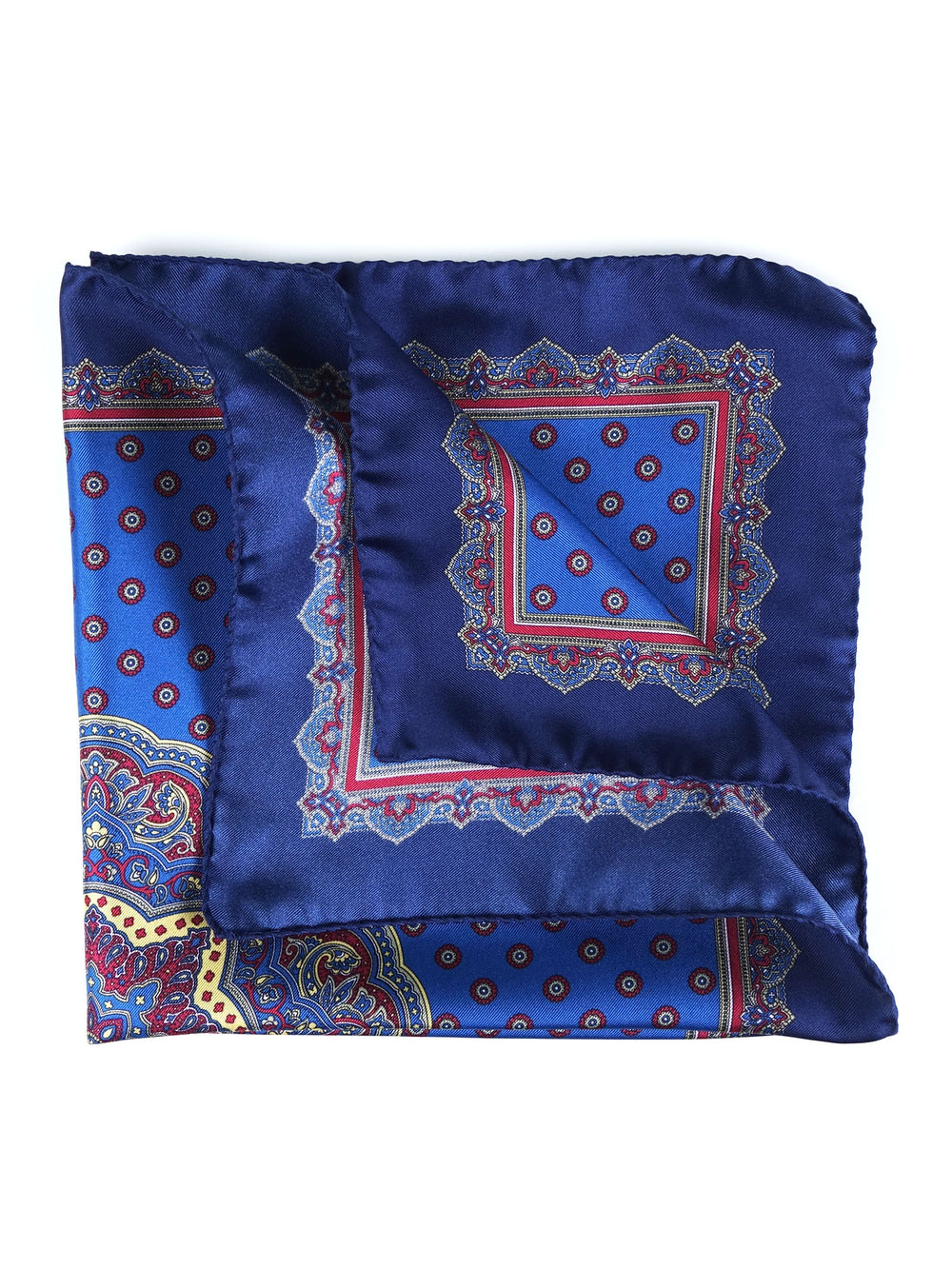 Fazzoletto da taschino 45x45cm blu elettrico in seta stampata MARINA