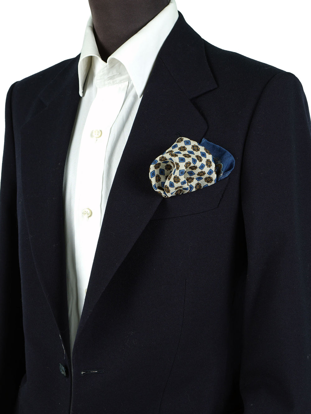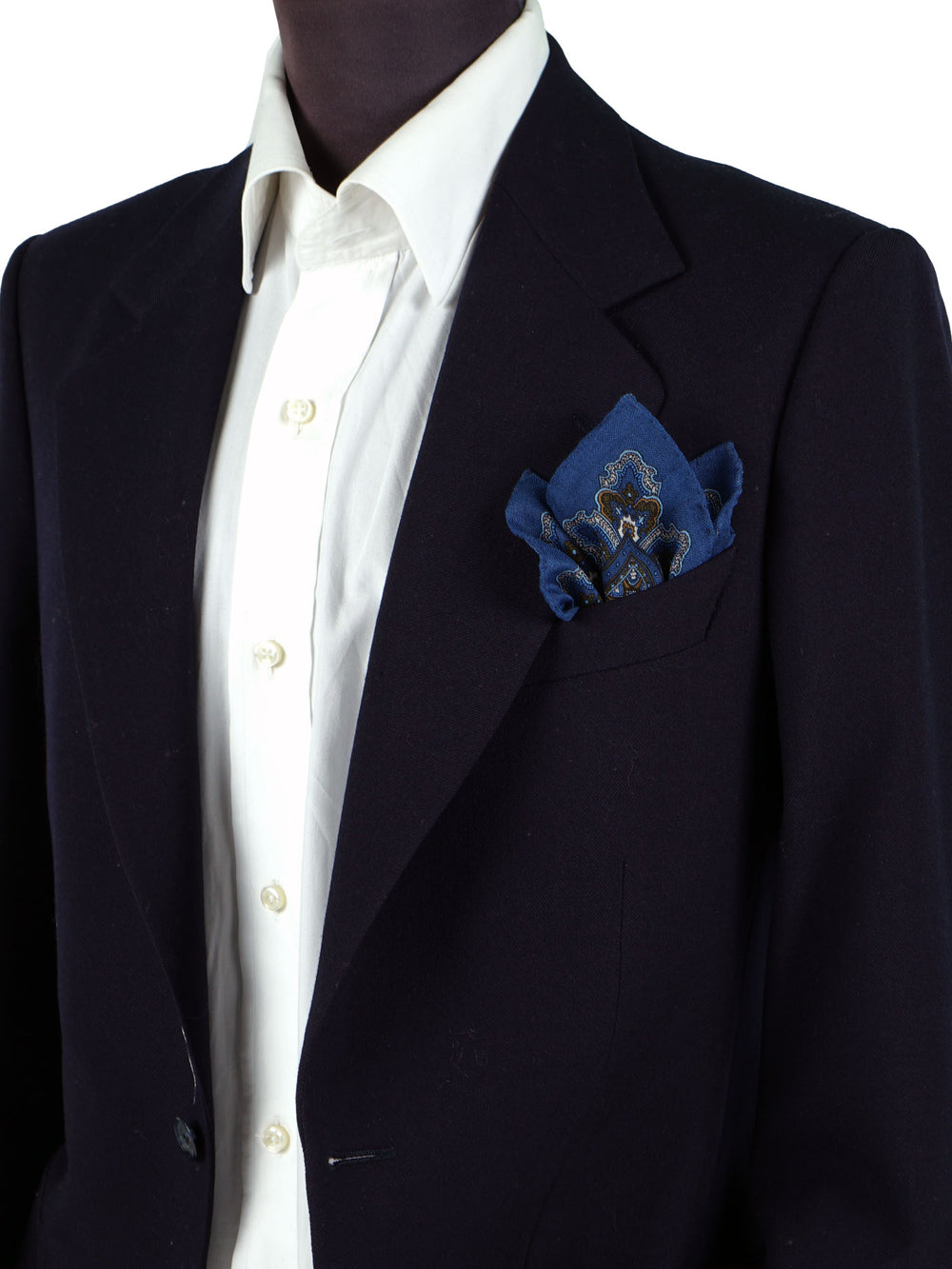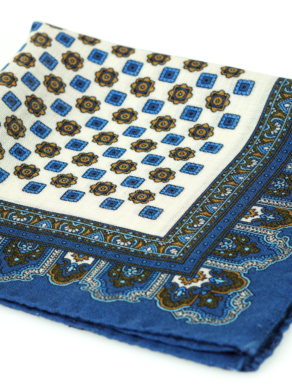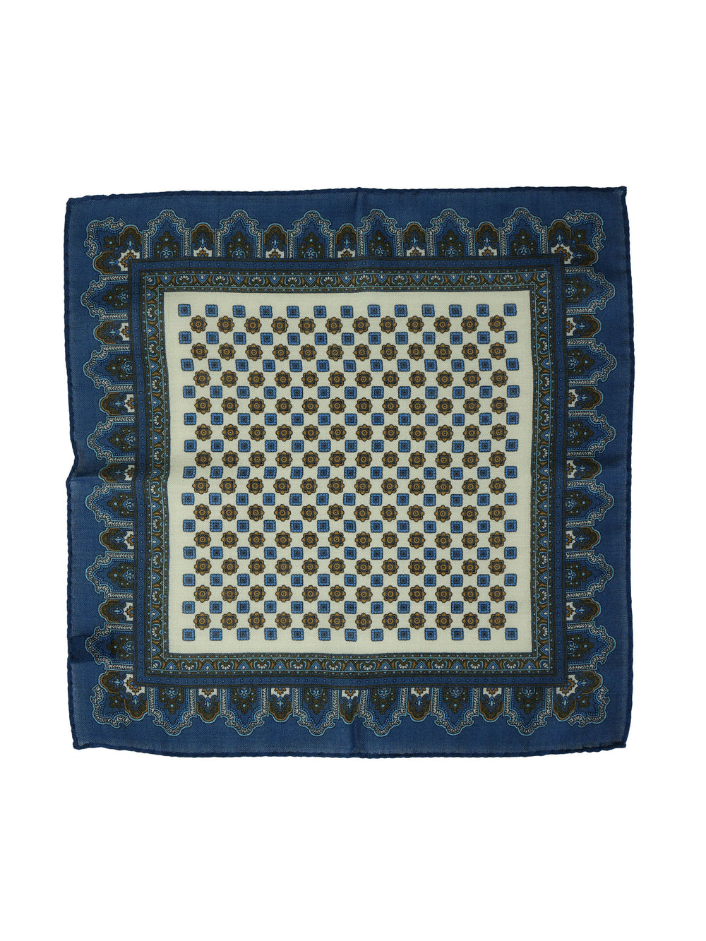 Fazzoletto da taschino avorio/blu in lana e cashmere DONATELLA
