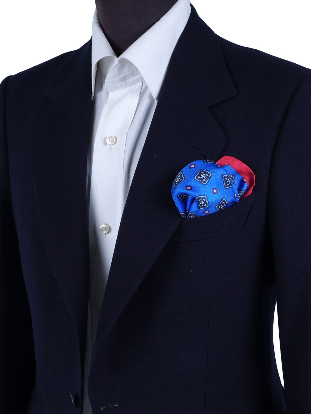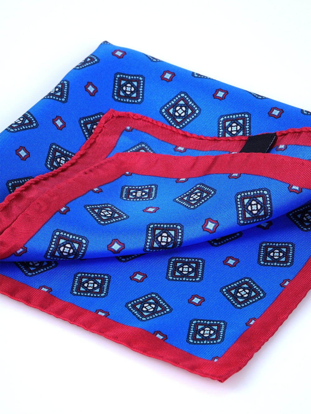 Fazzoletto da taschino blu elettrico in pura seta stampata ELIA