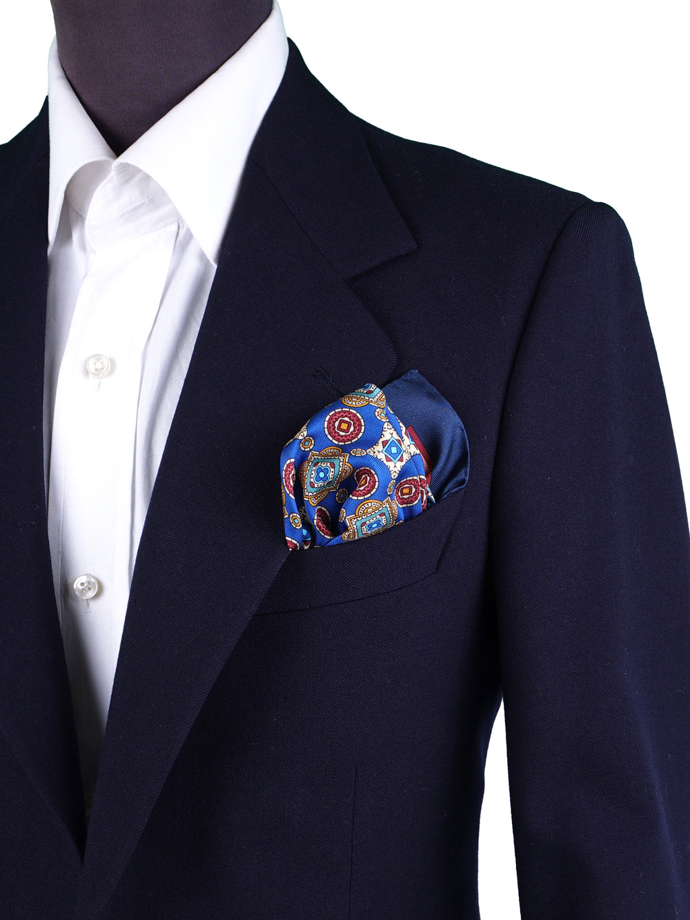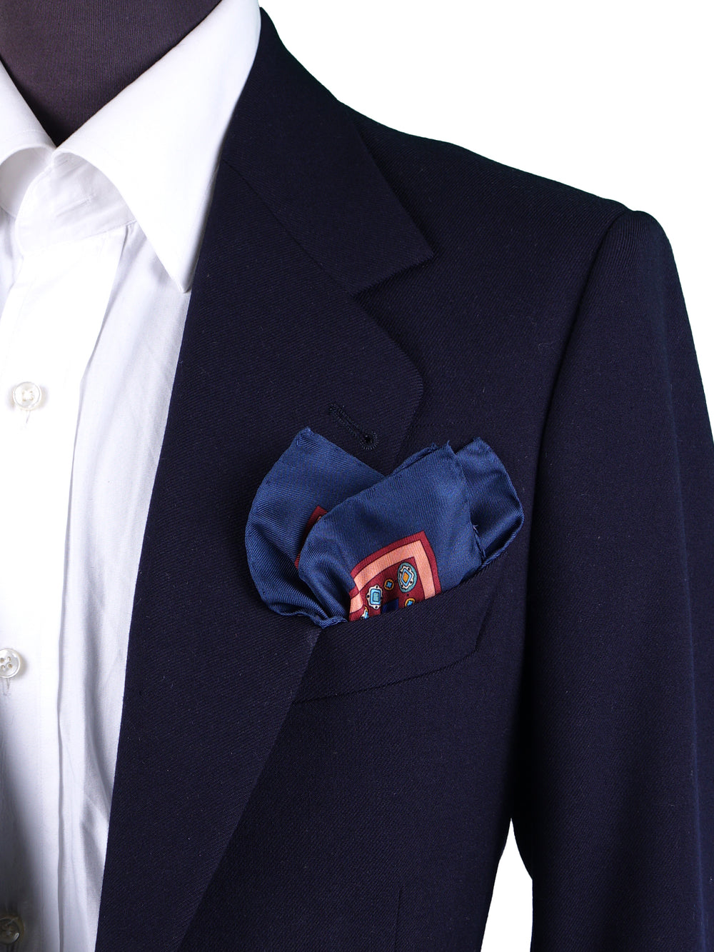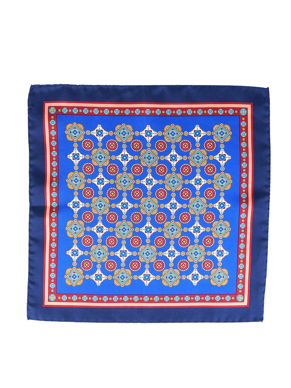 Un accessorio che è un vero e proprio "quattro fazzoletti in uno", pensato per l'uomo che ama la versatilità e l'eleganza. Questo fazzoletto da taschino è realizzato in purissima seta stampata italiana, dalla lucentezza vibrante e dalla mano morbida. Il suo design unico combina due anime: un centro con un motivo a maiolica su fondo blu royal, e un bordo più formale e discreto con un motivo geometrico su fondo blu navy. Questa costruzione permette, a seconda della piega, di creare look completamente diversi con un solo accessorio.