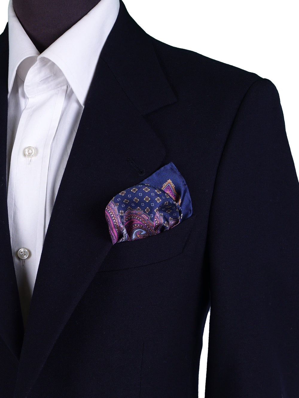 Un accessorio che è un'esplosione di colore e di arte, pensato per l'uomo che non teme di osare con stile e raffinatezza. Questo fazzoletto da taschino è realizzato in purissima seta stampata italiana, dalla lucentezza vibrante e dalla mano morbida e scivolosa. Il suo design è un'interpretazione sontuosa dell'iconico motivo Cachemire (Paisley), in una palette cromatica audace che unisce toni gioiello come il blu royal, il fucsia, il viola e l'ocra. È il pezzo perfetto per l'uomo che usa gli accessori per definire il proprio stile e comunicare la propria personalità.