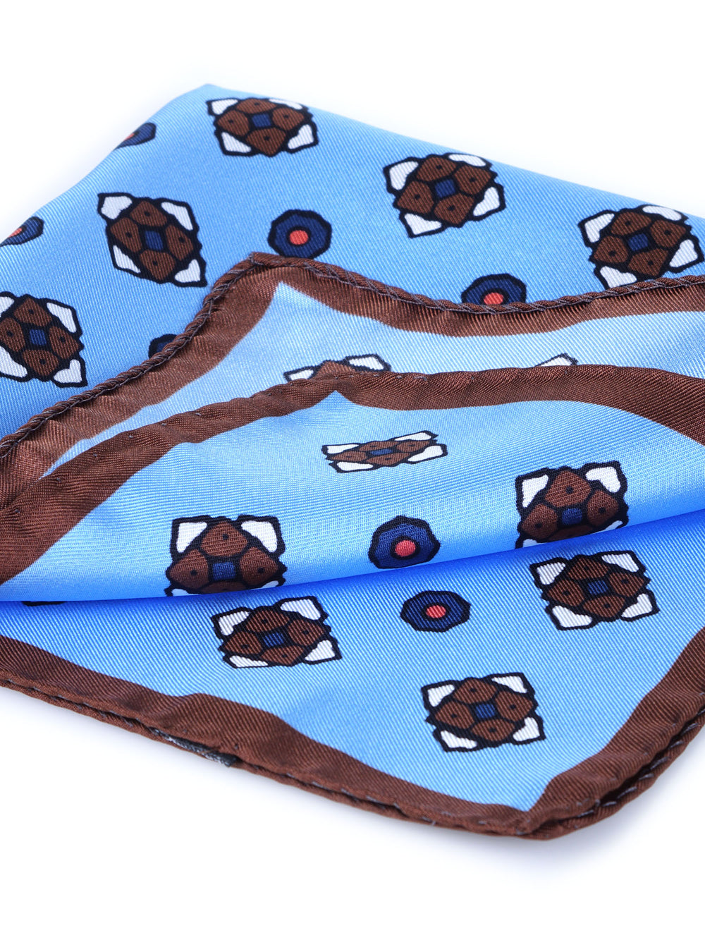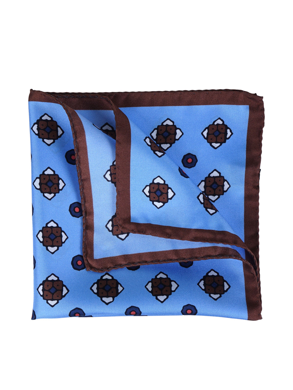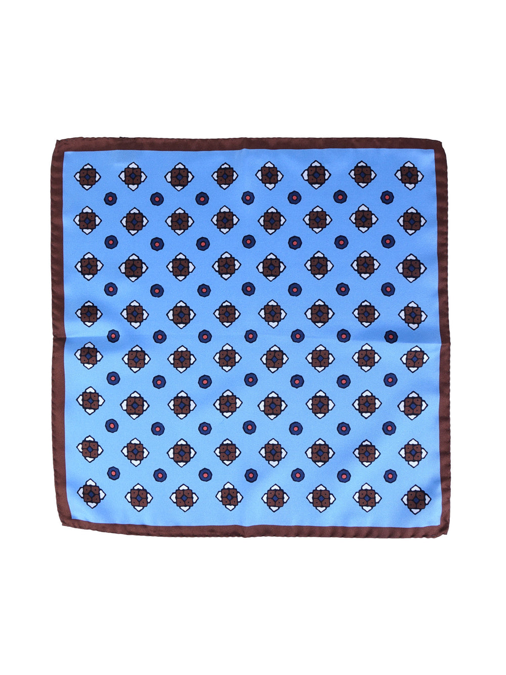 Fazzoletto da taschino celeste in pura seta stampata ALMA
