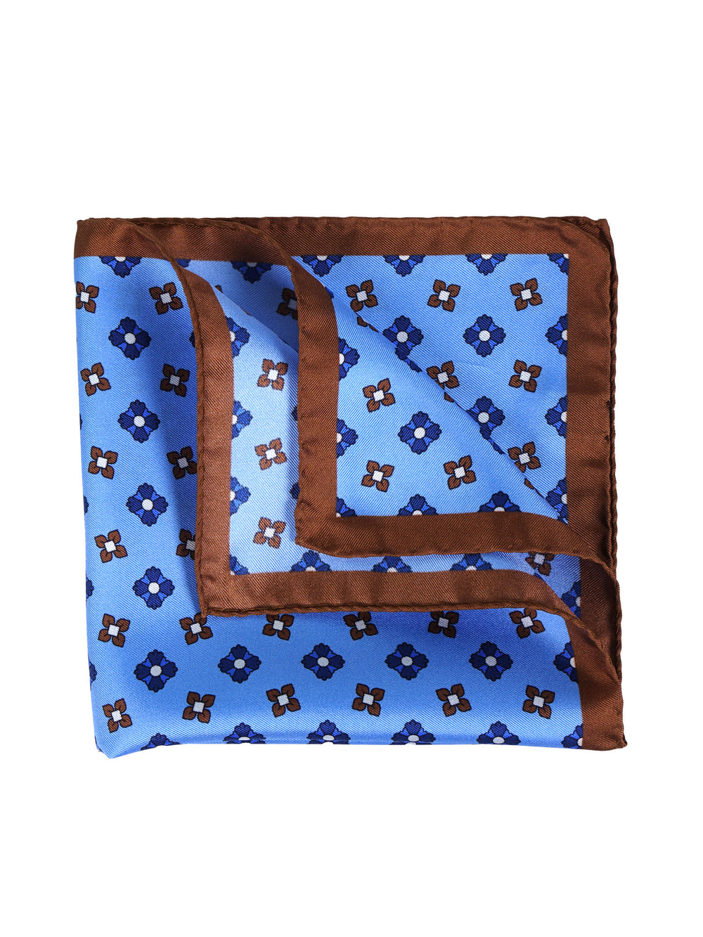 Fazzoletto da taschino celeste in pura seta stampata ENEA