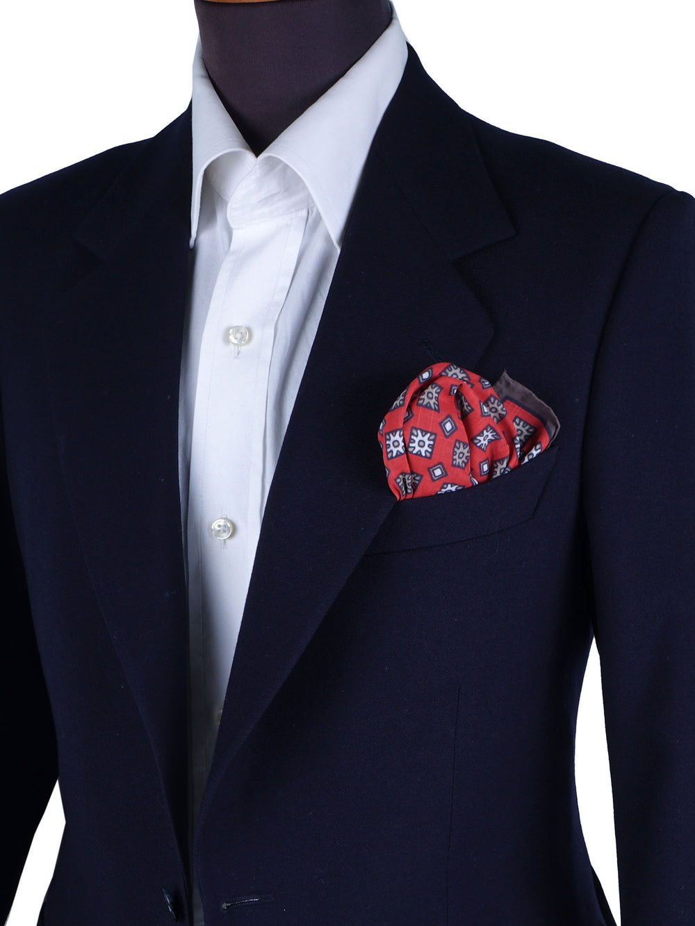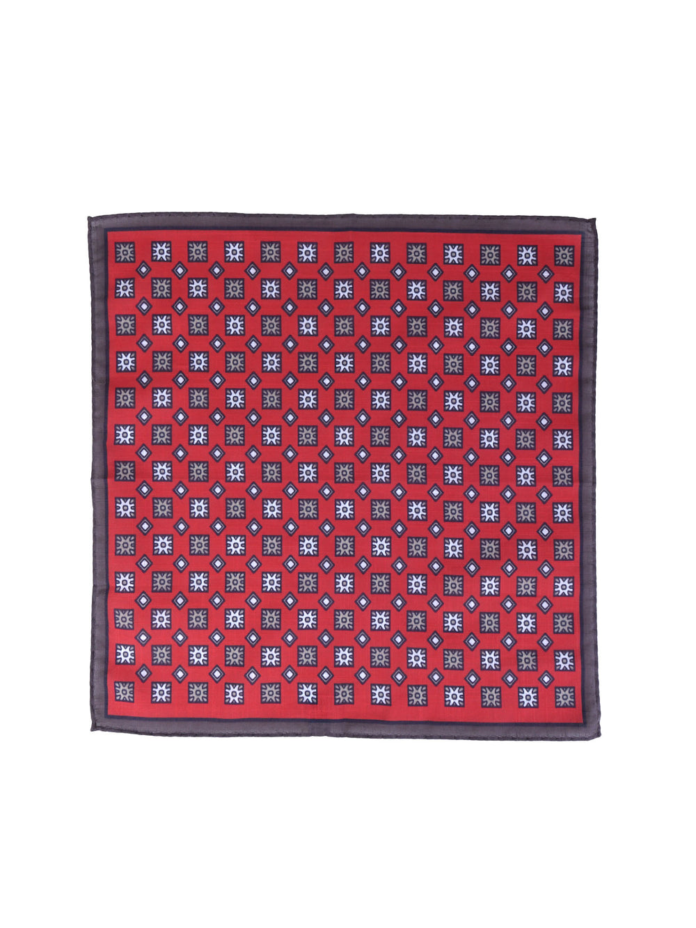 Questo fazzoletto da taschino in cotone rosso con dettagli blu e beige è l’accessorio perfetto per l’uomo che ama distinguersi con classe e personalità, adattandosi sia agli outfit eleganti che casual chic.