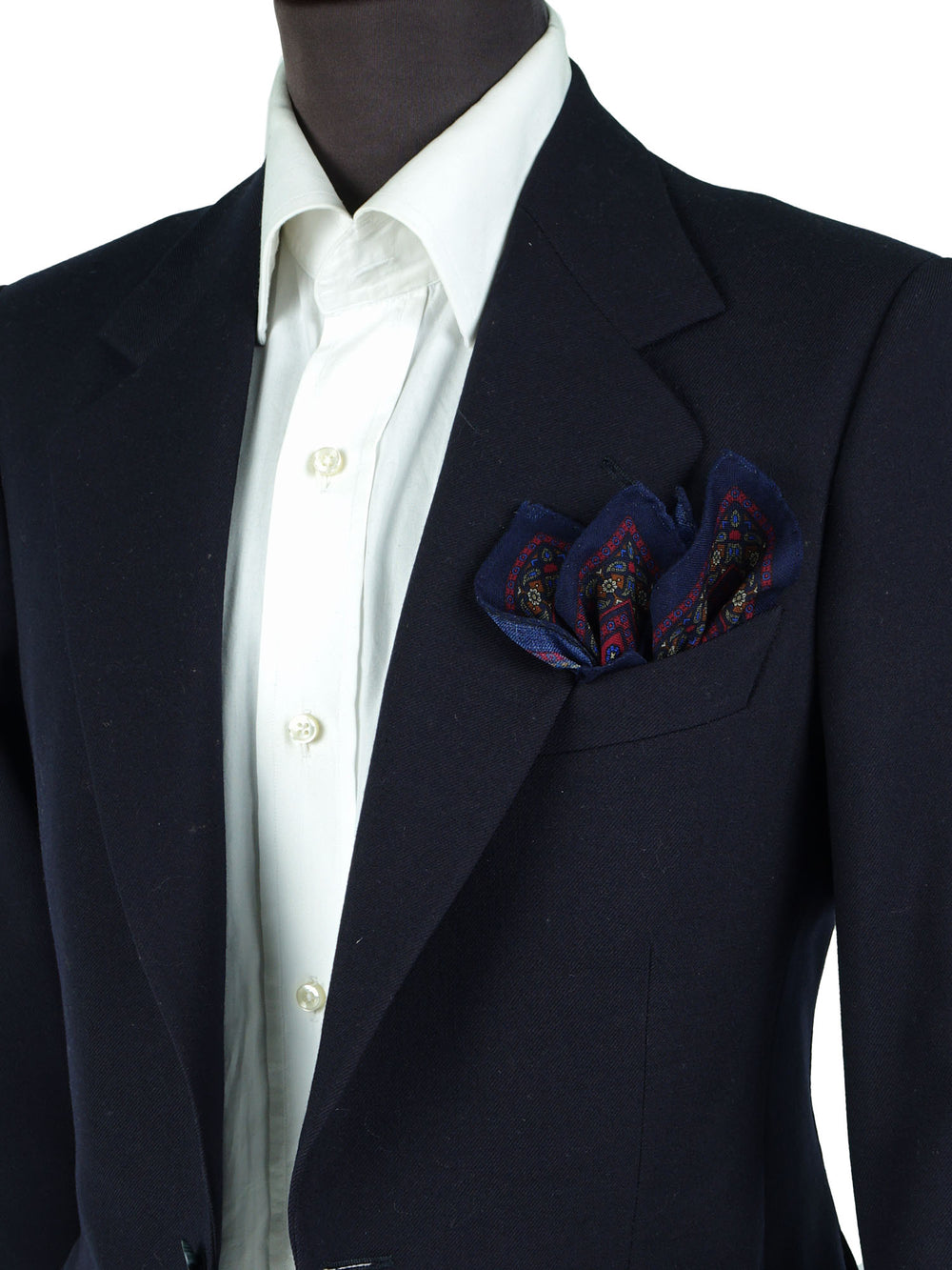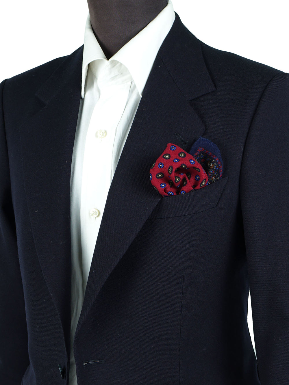 Un accessorio da vero intenditore, pensato per l'uomo che apprezza la consistenza e il calore dei tessuti nobili. Questo fazzoletto da taschino è realizzato in un pregiato blend di lana e cashmere, che gli conferisce una mano morbida, calda e un aspetto meravigliosamente opaco. Il design è un capolavoro di equilibrio cromatico: un vibrante fondo rosso, con un micro-motivo che alterna un cachemire stilizzato a piccoli fiori, è incorniciato da una ricca bordatura blu navy. È un pezzo che non passa inosservato ma che mantiene un'eleganza classica, perfetto per ravvivare i toni scuri del guardaroba invernale.
