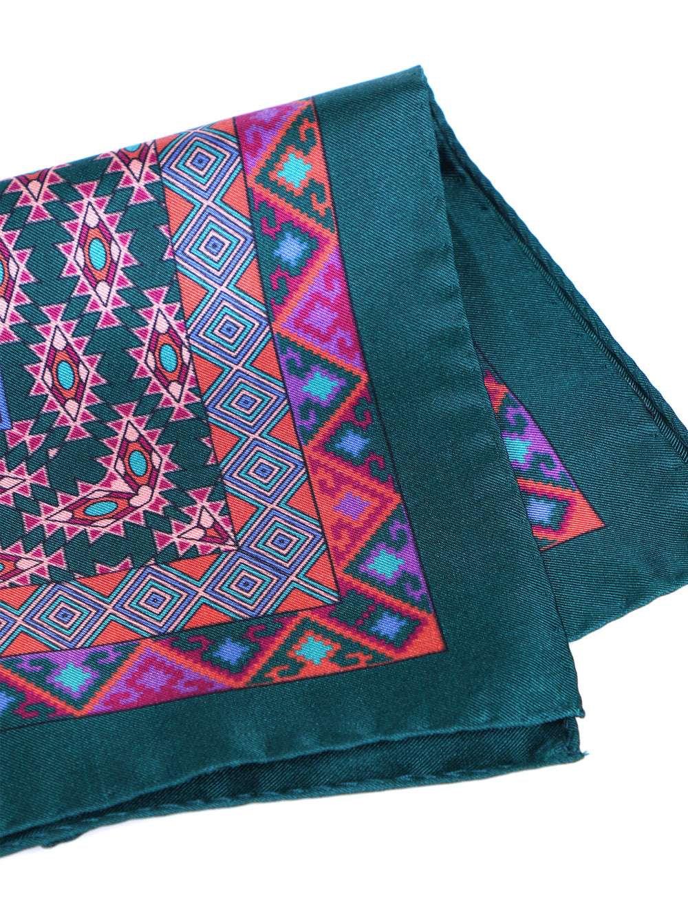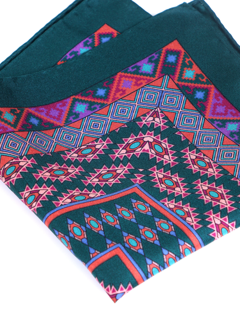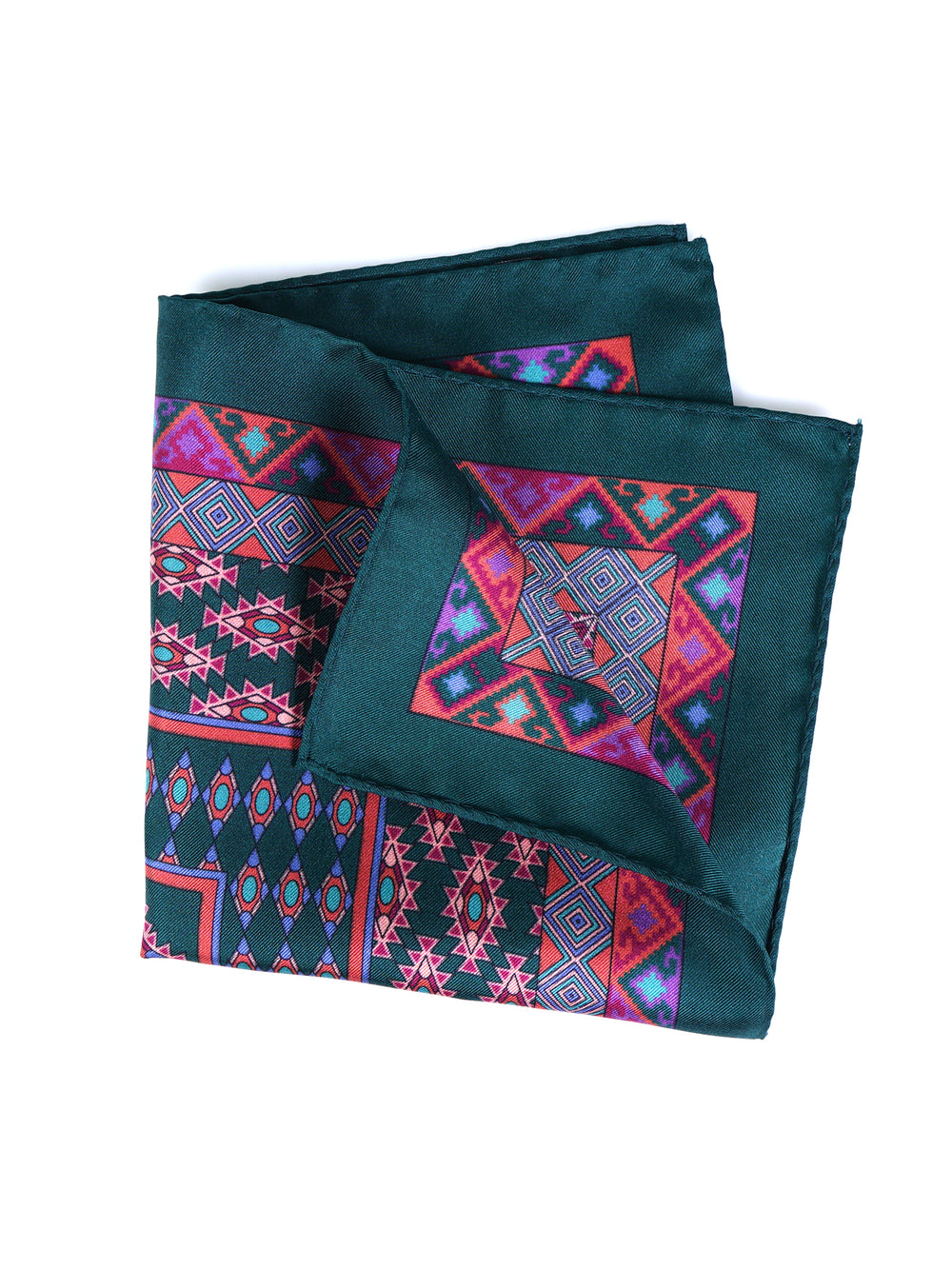 Fazzoletto da taschino verde in pura seta stampata ETNICO