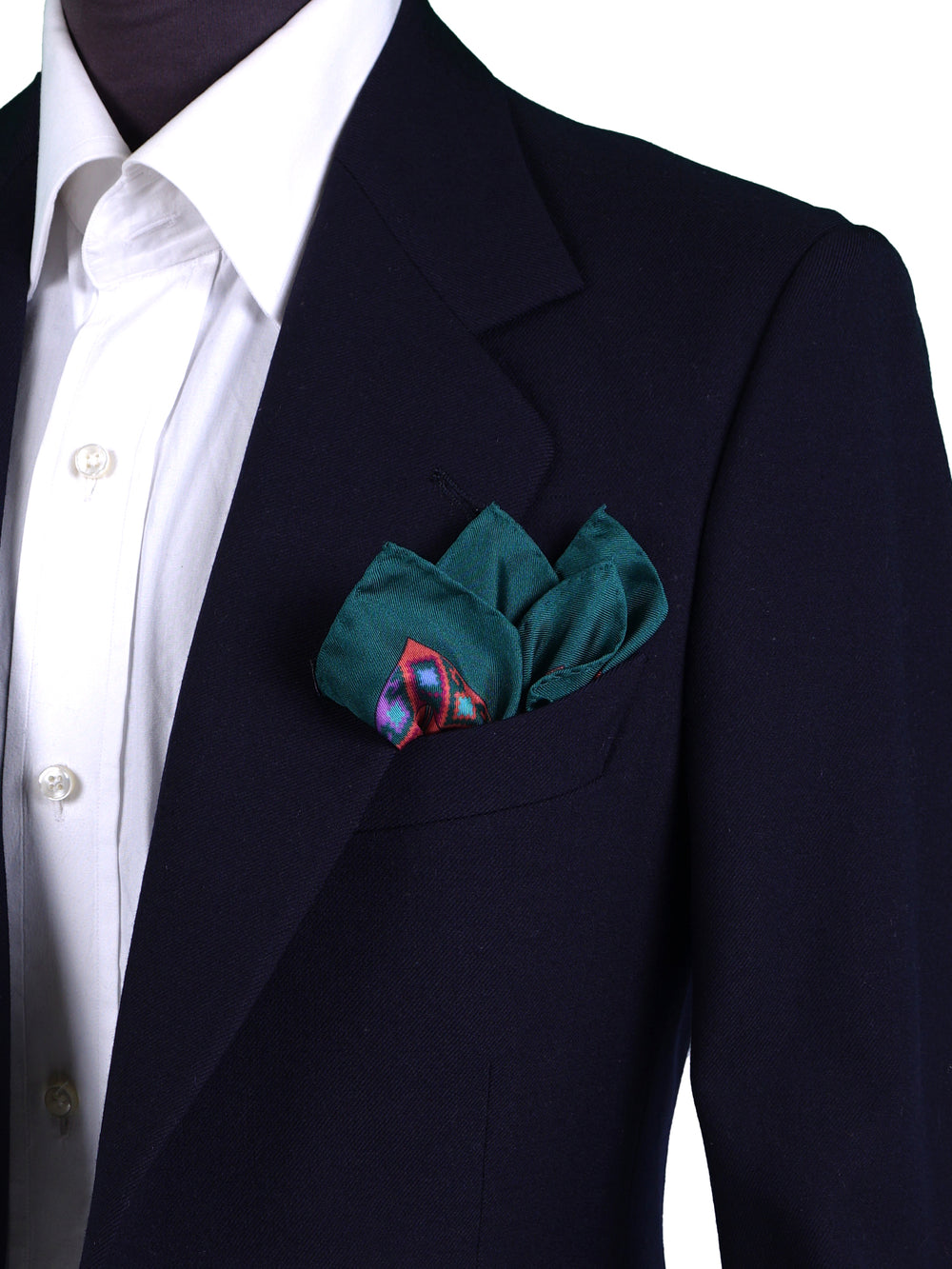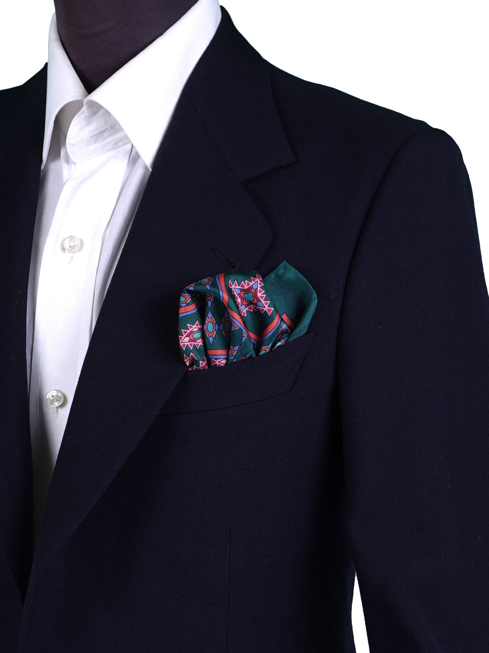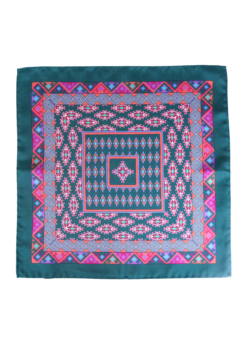 Fazzoletto da taschino verde in pura seta stampata ETNICO