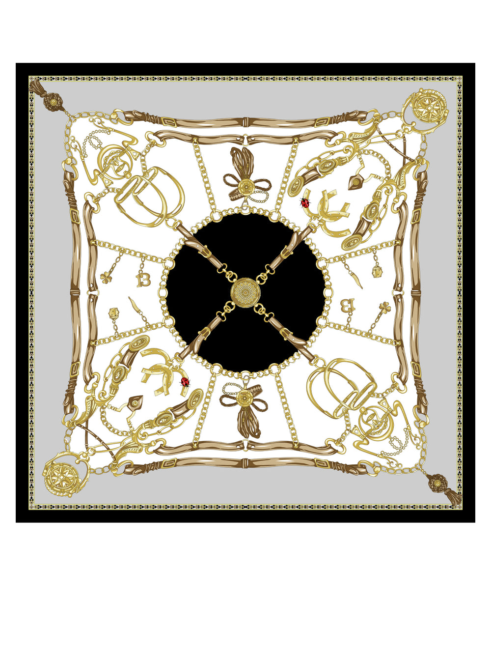 Foulard bianco 90x90cm in seta stampata GOOD LUCK
