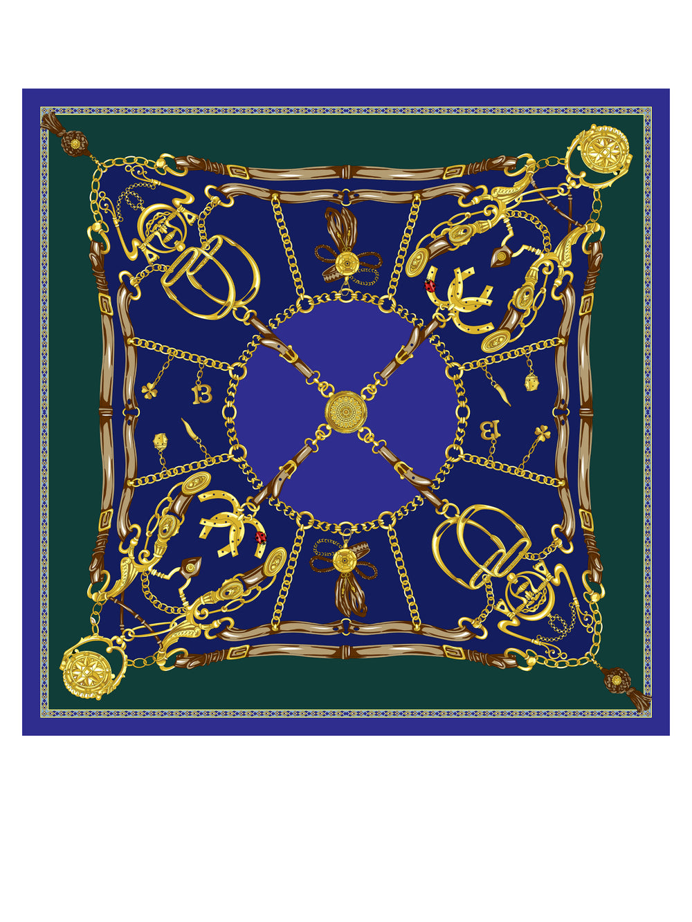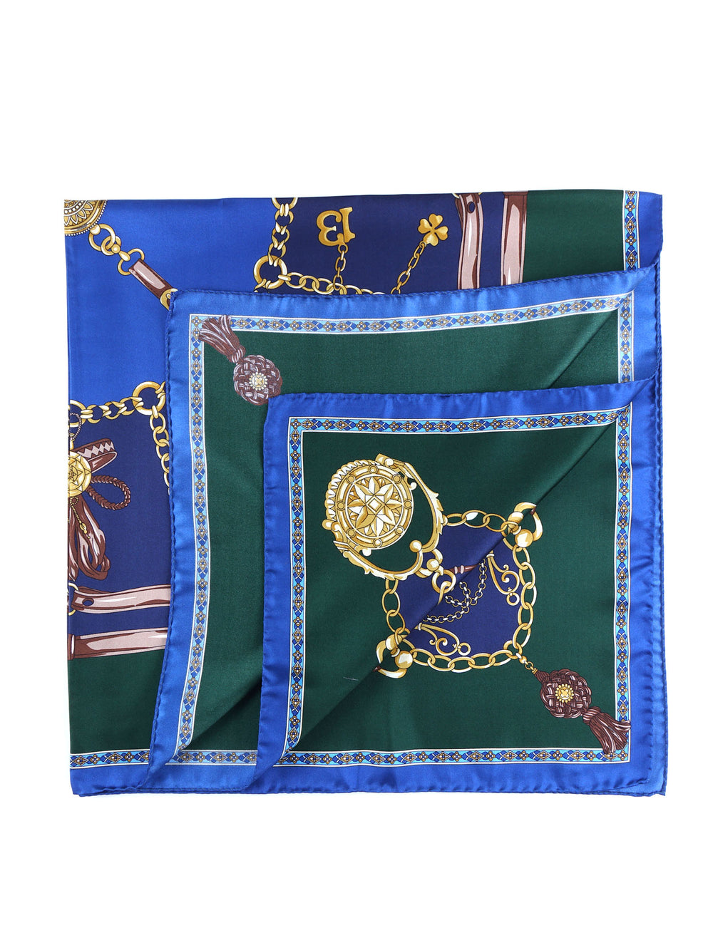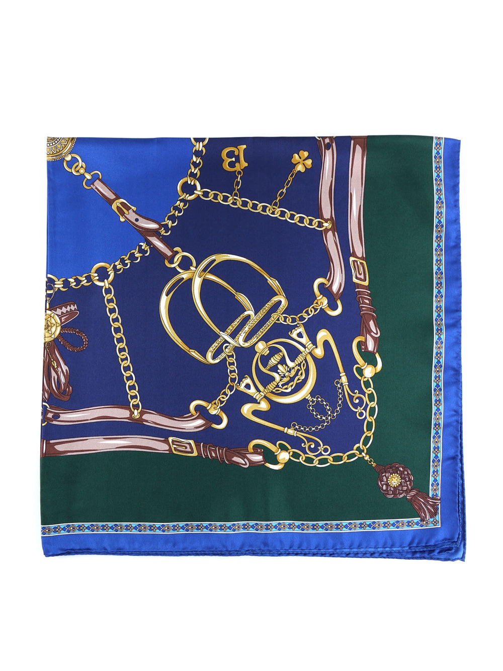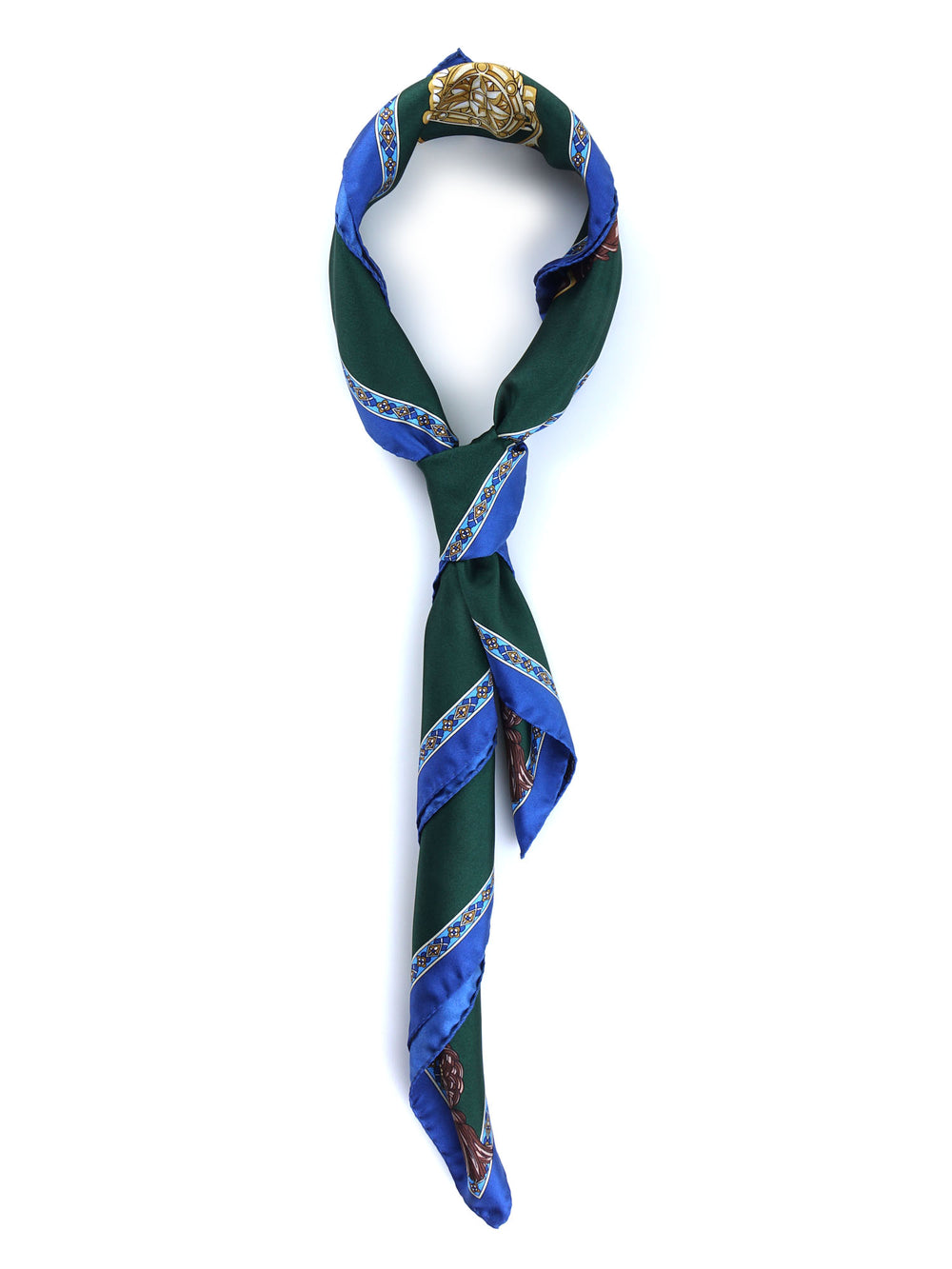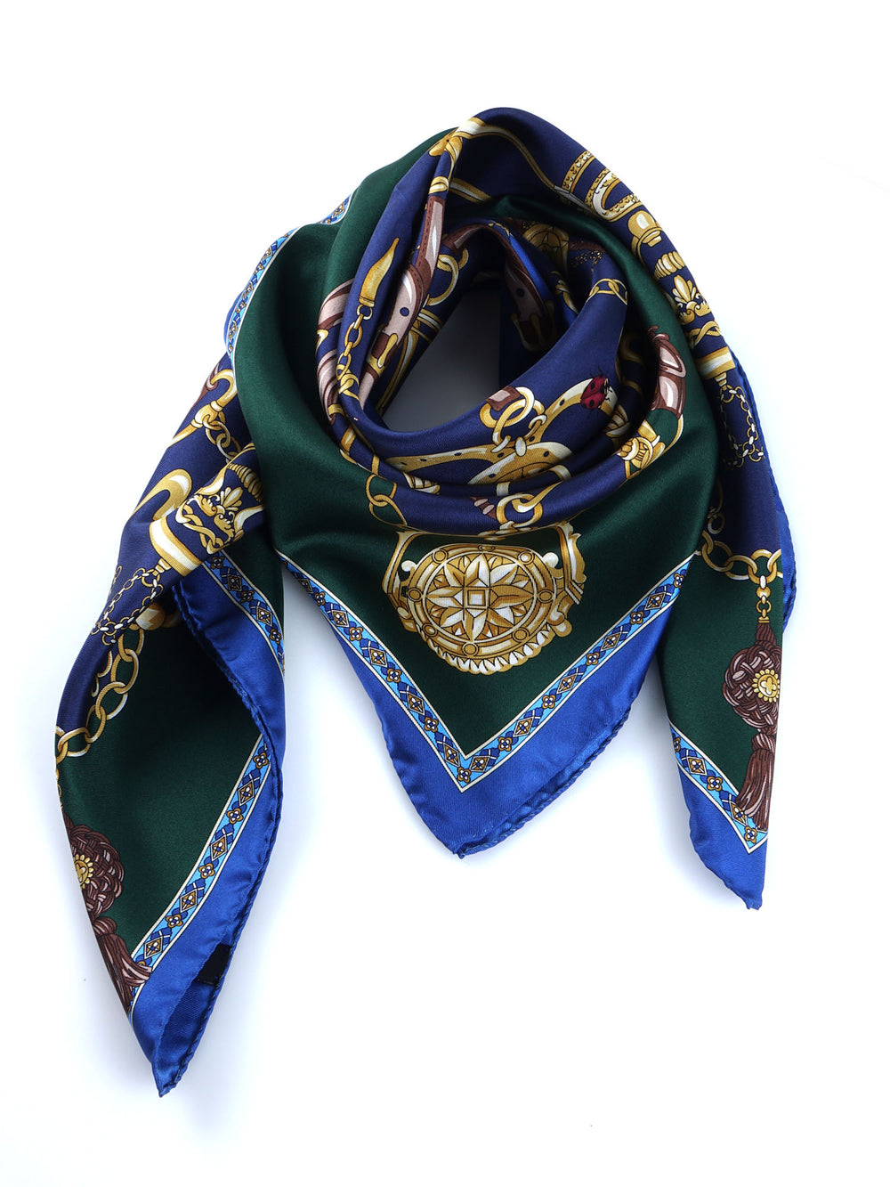 Foulard blu/verde 90x90cm in seta stampata GOOD LUCK