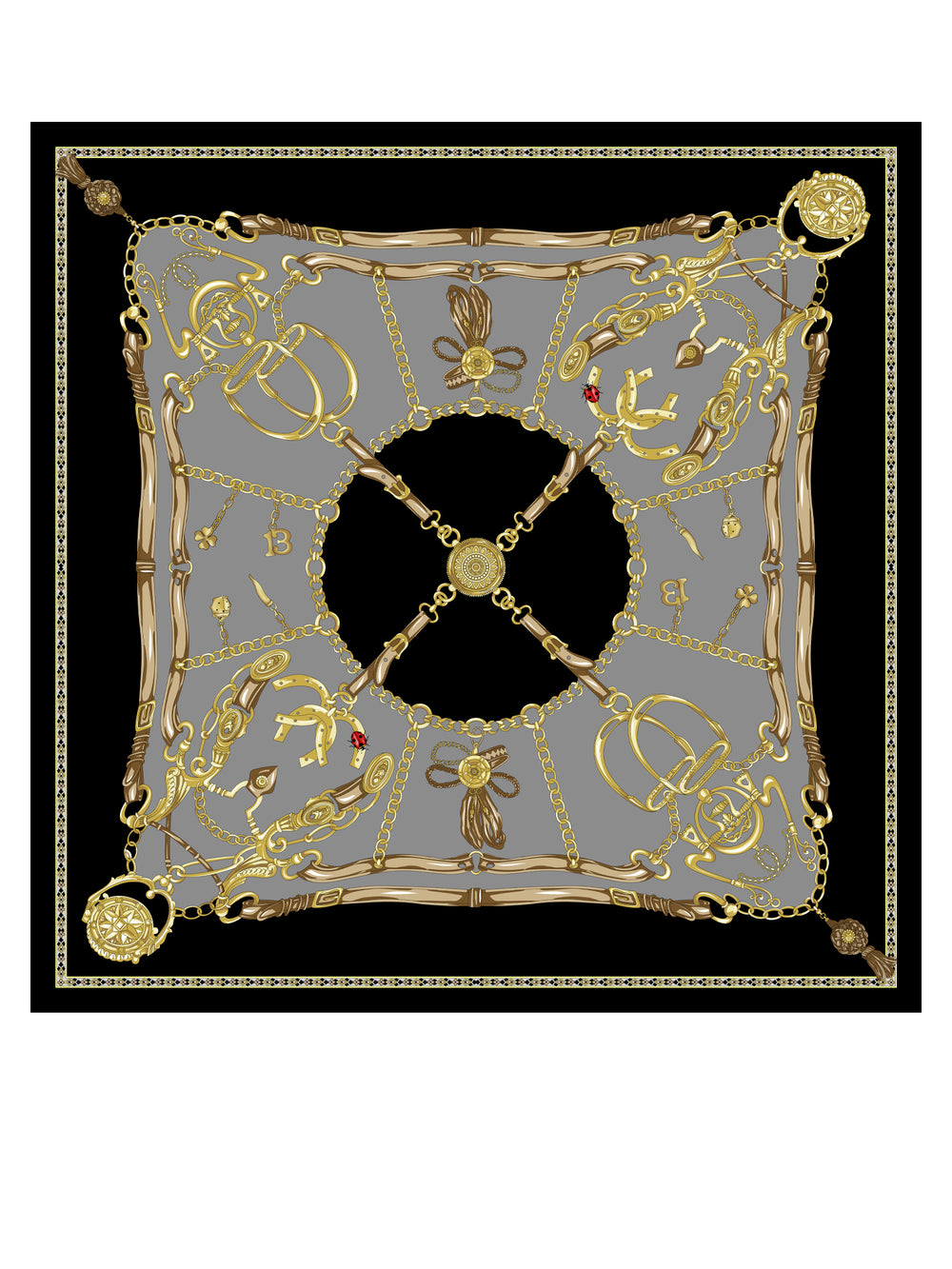 Foulard in grigio e nero 90x90cm in seta stampata GOOD LUCK