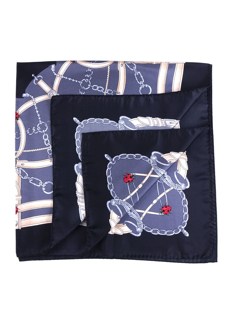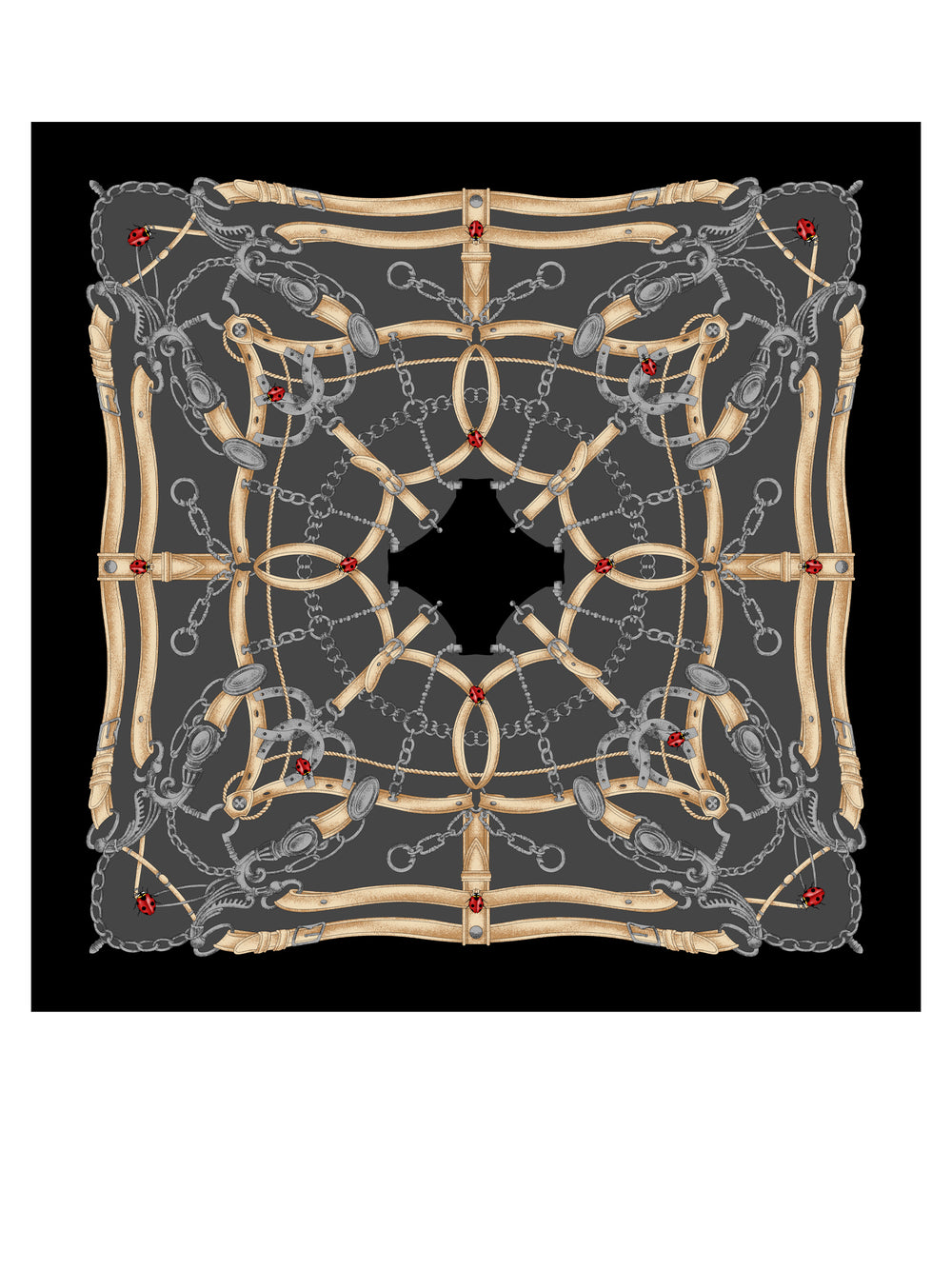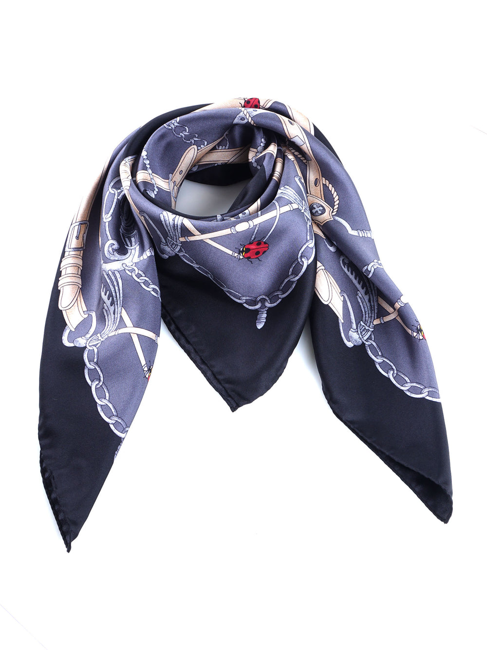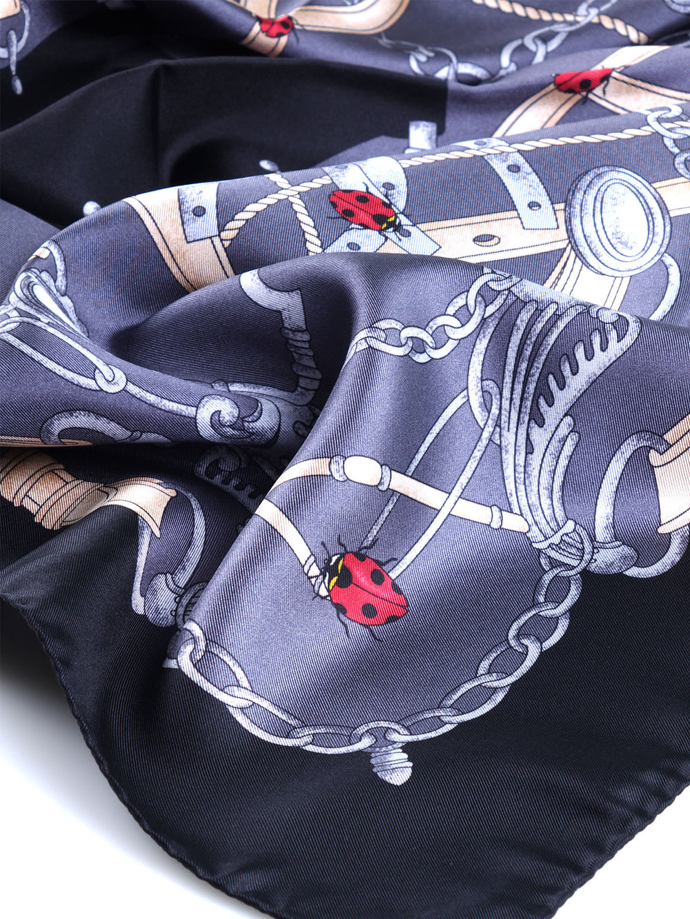 Foulard nero 90x90cm in seta stampata LADY BUGS