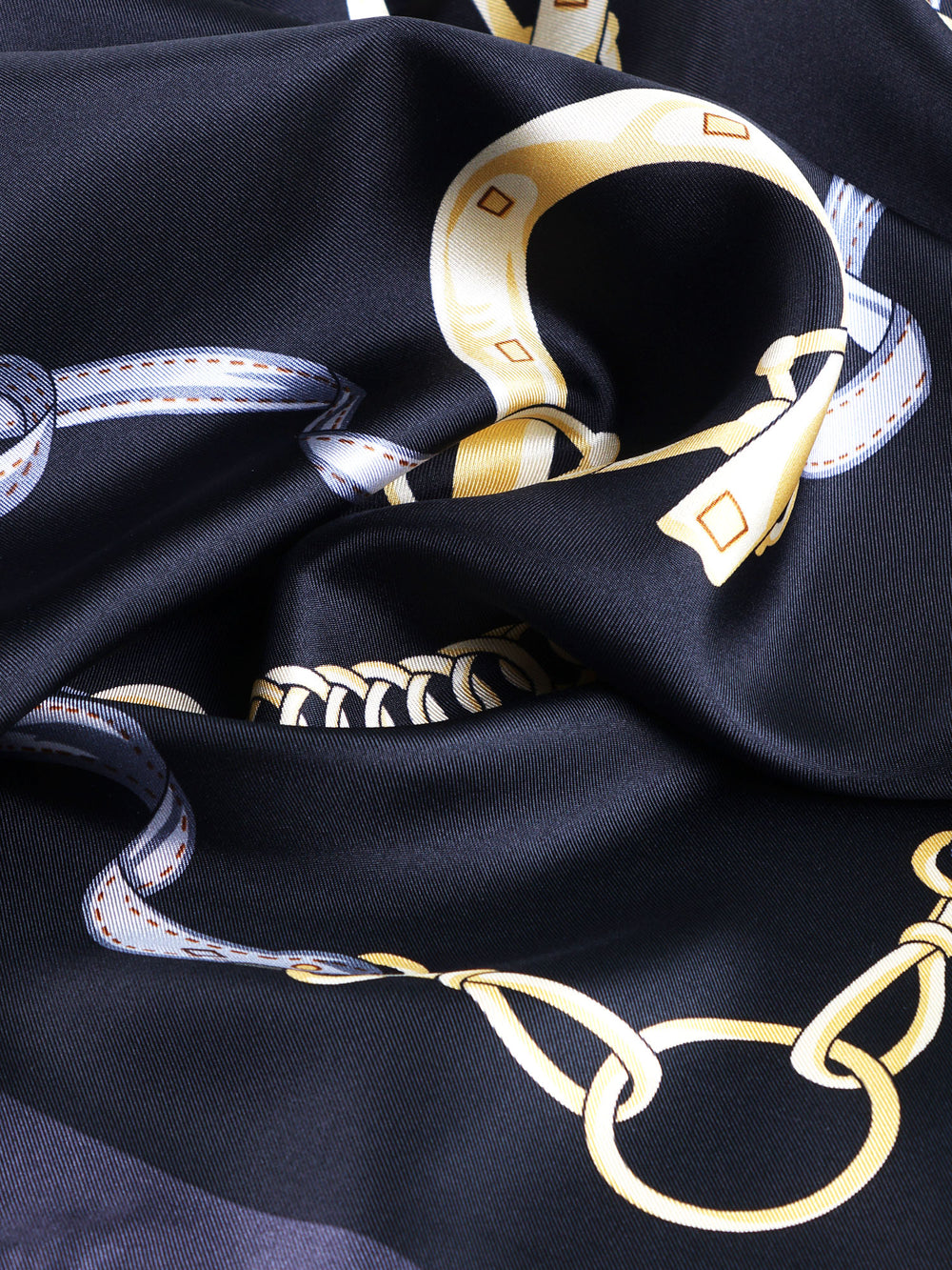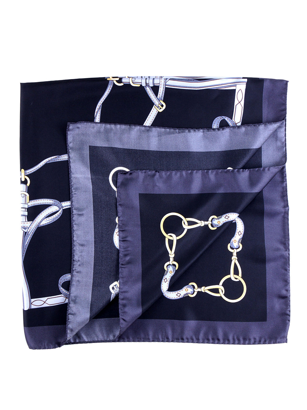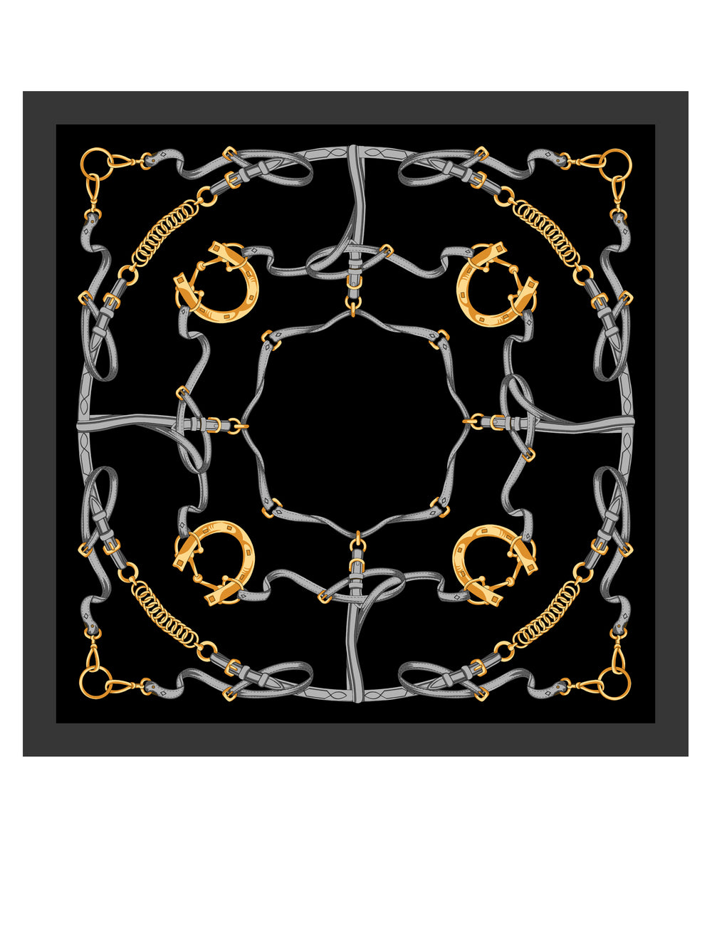 Fondo nero con ferri da cavallo grigi, briglie gialle e cornice grigio scuro