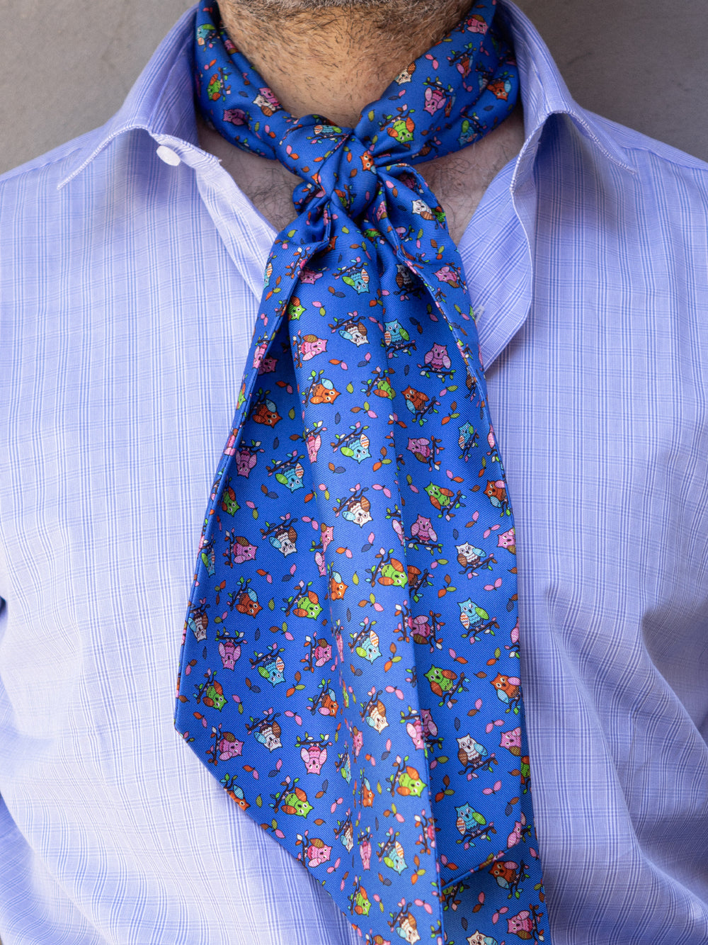 Foulard TWILLY in pura seta stampata Blu Elettrico