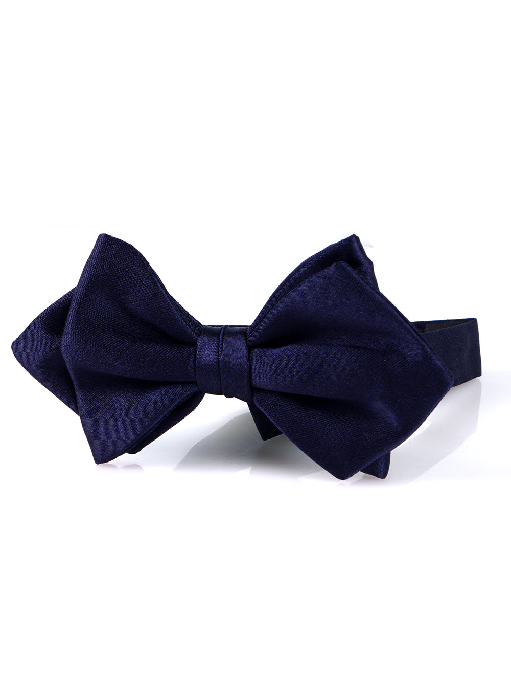Un investimento in intramontabile eleganza. Questo papillon a punta Don Mimì, realizzato in pura e prestigiosa seta raso, è l'emblema dello status e della classe sartoriale dedicata all'uomo affermato. Il suo punto di blu notte profondo, unito alla lucentezza naturale del raso, conferisce un rigore assoluto a ogni abbigliamento di alta rappresentanza. Essendo già annodato con maestria, garantisce una perfezione geometrica "diamond point" in grado di esaltare la figura, rappresentando l'eccellenza e il prestigio per chi ama dettare le regole dello stile, senza mai rinunciare alla tradizione.