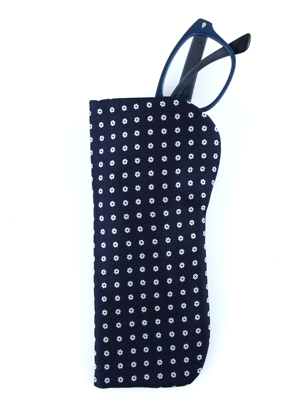 Portaocchiali blu scuro in seta stampata inglese RENATA