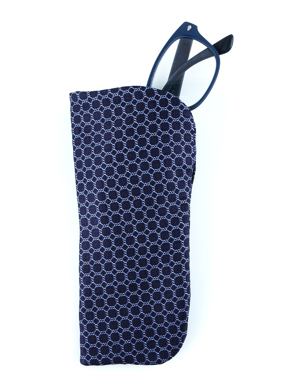 Portaocchiali blu scuro in seta stampata