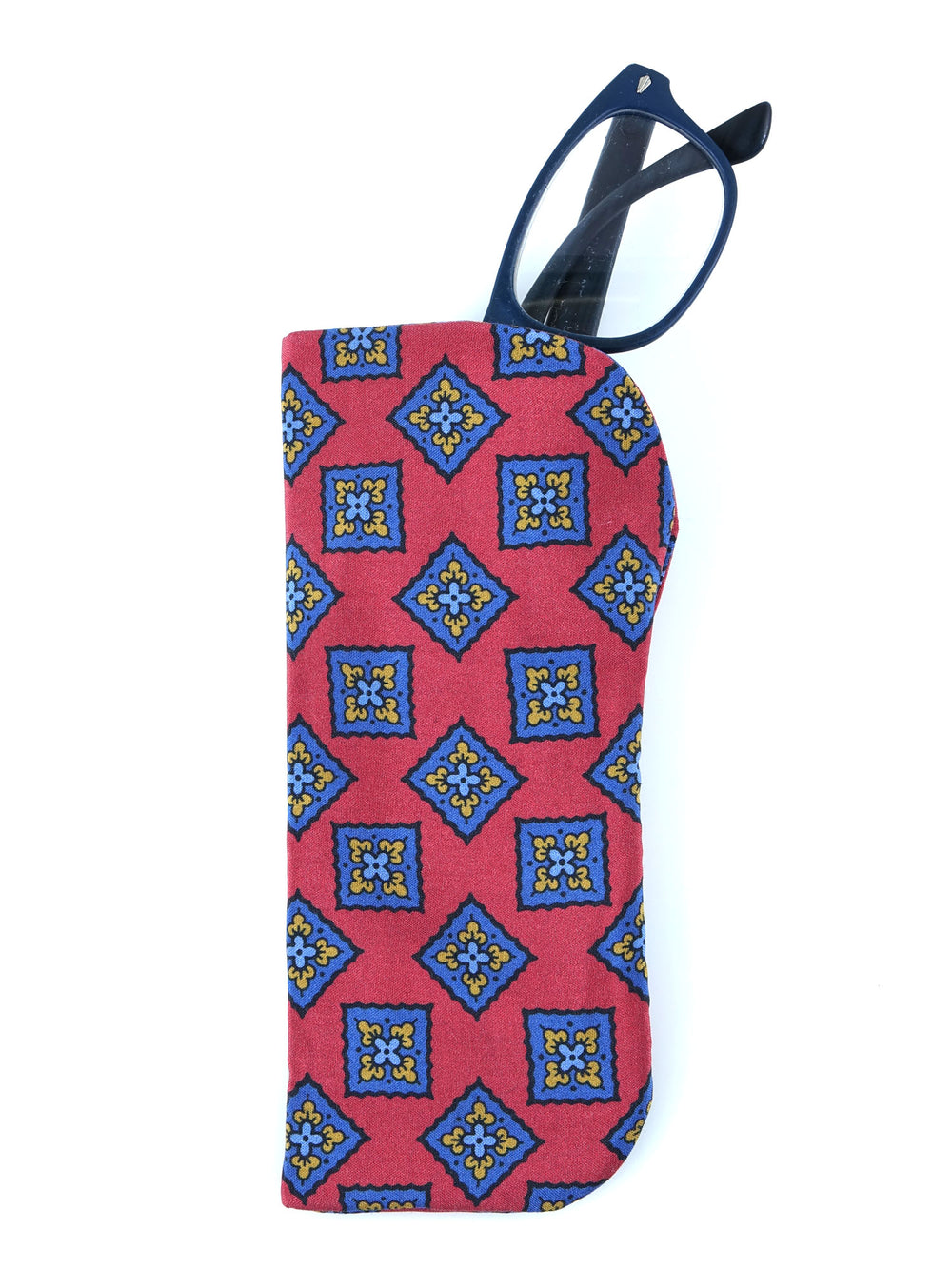 Portaocchiali rosso scuro in seta madder ROMOLO