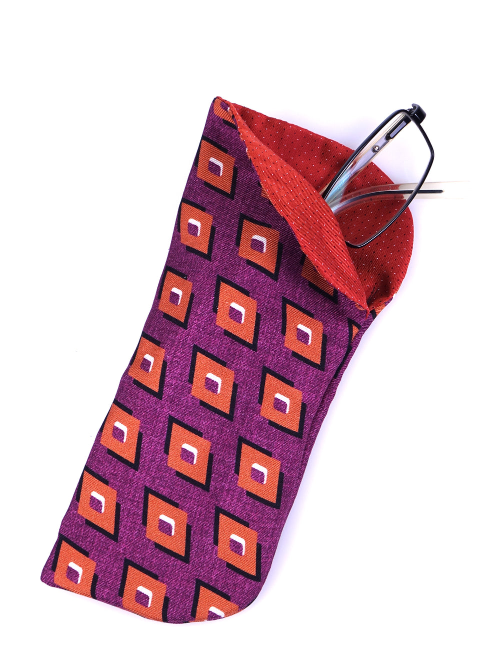 Questo portaocchiali in seta madder viola con rombi arancione è la scelta ideale per chi ama valorizzare il proprio stile con accessori esclusivi e distintivi.