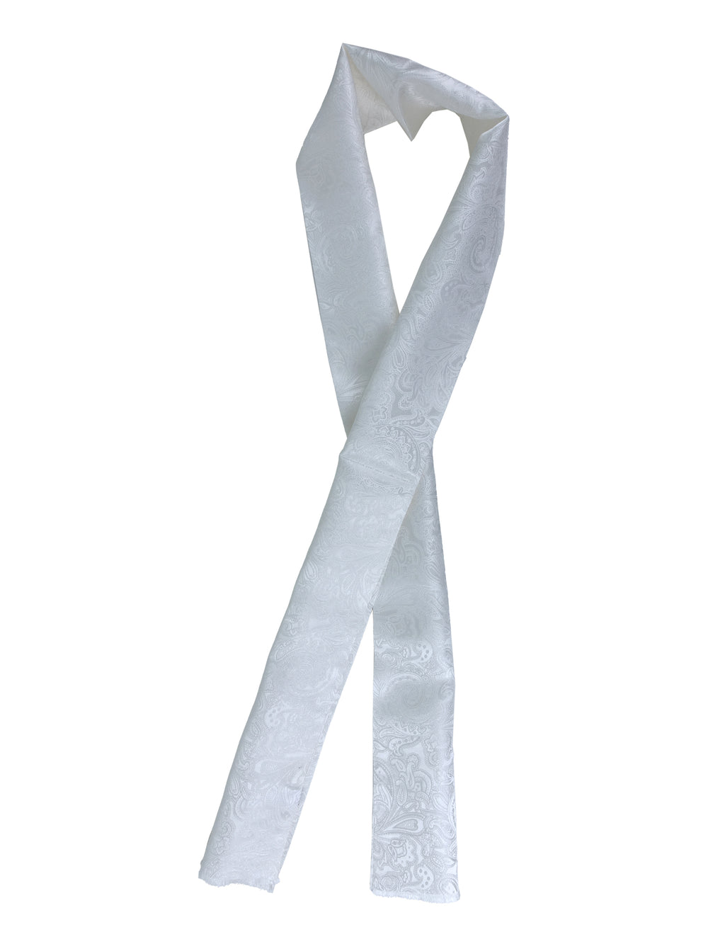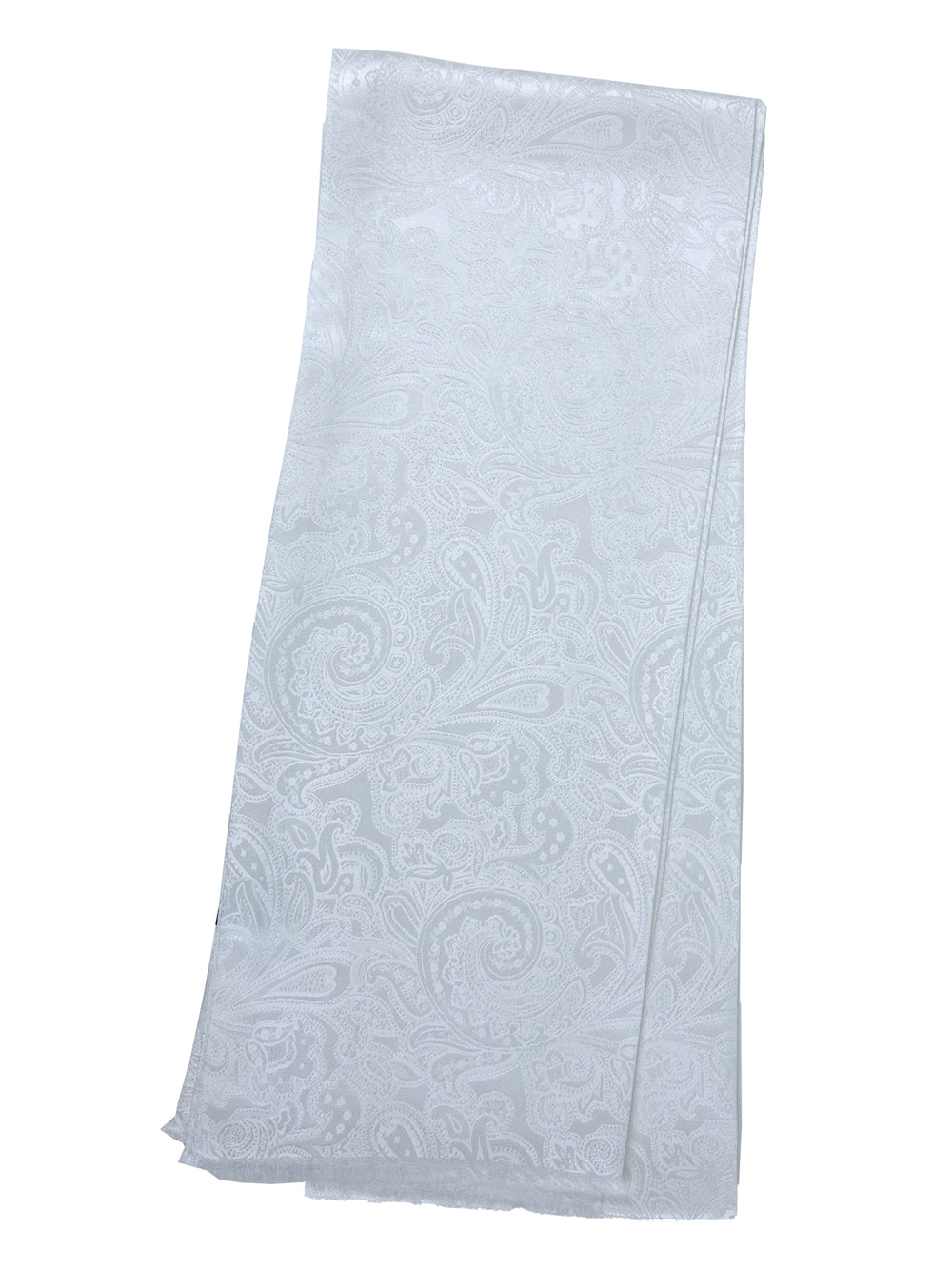 Questa sciarpa Don Mimì in pura seta bianca con motivo cashmere lucido è l’accessorio definitivo per completare con grazia ed esclusività ogni outfit da cerimonia. Un simbolo di artigianalità e stile Made in Italy.